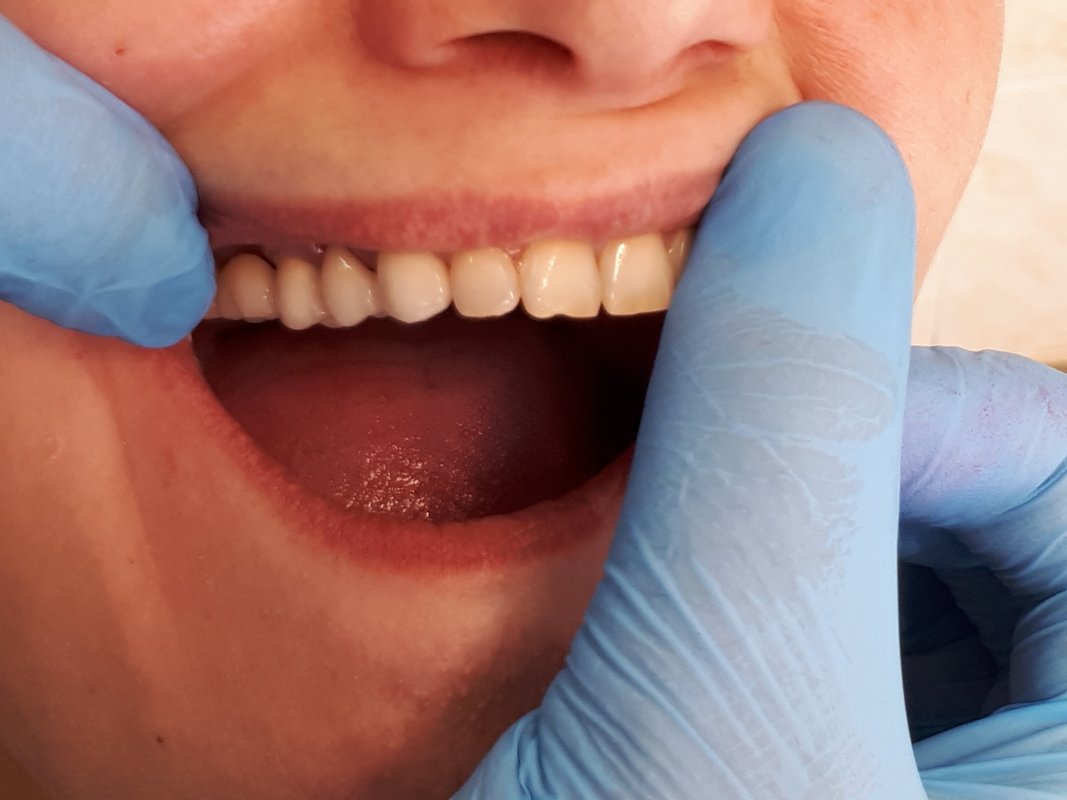 В последний визит мне выполнили осмотр и внесли изменения в пломбу. Ничего критичного не было, просто требовалось слегка расширить промежуток между зубами.